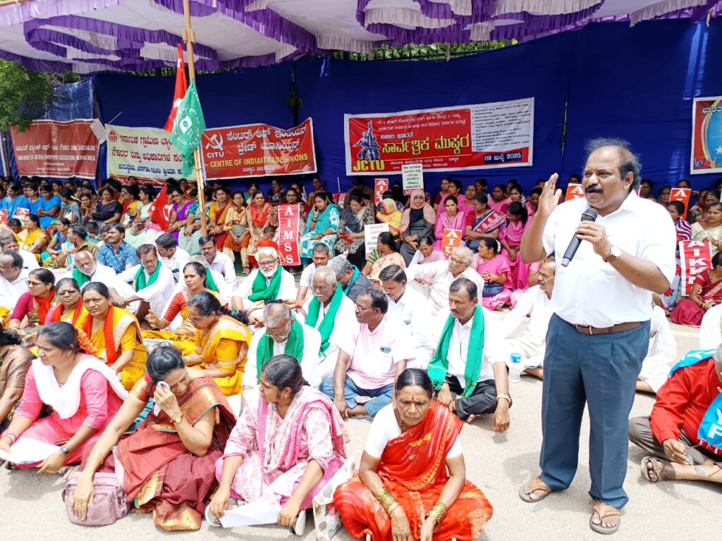 ರಾಜ್ಯದಲ್ಲಿಯೂ ಅಧಿಕಾರಕ್ಕೆ ಬಂದ ಕಾಂಗ್ರೆಸ್ ಸರ್ಕಾರದ ದುಡಿತದ ಅವಧಿಯ ಹೆಚ್ಚಳವನ್ನು ಮತ್ತು ಹಿಂದಿನ ಸರ್ಕಾರ ತಂದ ಕೃಷಿ ಕಾಯ್ದೆಗಳನ್ನು ಮುಂದುವರಿಸುತ್ತಿದೆ. ಫ್ಯಾಕ್ಟರಿ ಕಾಯ್ದೆಗೆ ತಿದ್ದುಪಡಿ ತರಲು, ಮಹಿಳೆಯರಿಗೆ ರಾತ್ರಿ ಪಾಳಿ, ಅಪಾಯಕಾರಿ ಕಾರ್ಖಾನೆಗಳ ಸ್ಥಳಗಳಲ್ಲಿ ಮಹಿಳೆಯರ ನಿರ್ಬಂಧವನ್ನು ತೆಗೆಯುವುದು, ಲಕ್ಷಾಂತರ ಕಾರ್ಮಿಕರನ್ನು ಕಾರ್ಖಾನೆ ಕಾಯ್ದೆಯಿಂದ ಹೊರಗಿಡಲು ಹೊರಟಿದೆ. ಕೇಂದ್ರ ಮತ್ತು ರಾಜ್ಯ ಸರ್ಕಾರಗಳಿಂದ ಬೆಲೆ ಏರಿಕೆಗೆ ಯಾವುದೇ ಕಡಿವಾಣವಿಲ್ಲ. ಈ ಹಿನ್ನೆಲೆಯಲ್ಲಿ ಕಾರ್ಮಿಕ ಹಾಗೂ ರೈತ ಸಂಘಟನೆಗಳು ಒಗ್ಗೂಡಿ ಬಲಿಷ್ಠ ಹೋರಾಟಗಳನ್ನು ರೂಪಿಸುವ ಅವಶ್ಯಕತೆಯಿದೆ. ಈ ಮೂಲಕ ಬಂಡವಾಳಶಾಹಿ ಪರ ನೀತಿಗಳನ್ನು ಹಿಮ್ಮೆಟ್ಟಿಸಬೇಕು ಎಂದು ಕರೆ ನೀಡಿದರು